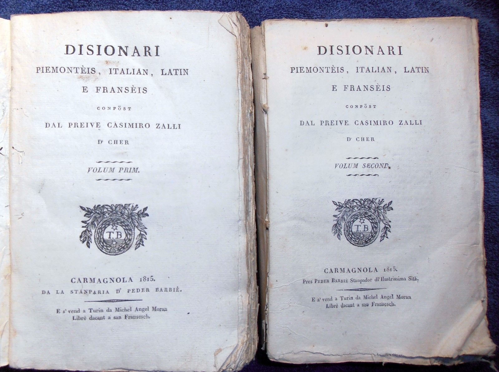 Casimiro Zalli, “Disionari piemontèis, italian, latin e fransèis”, edito nel 1815